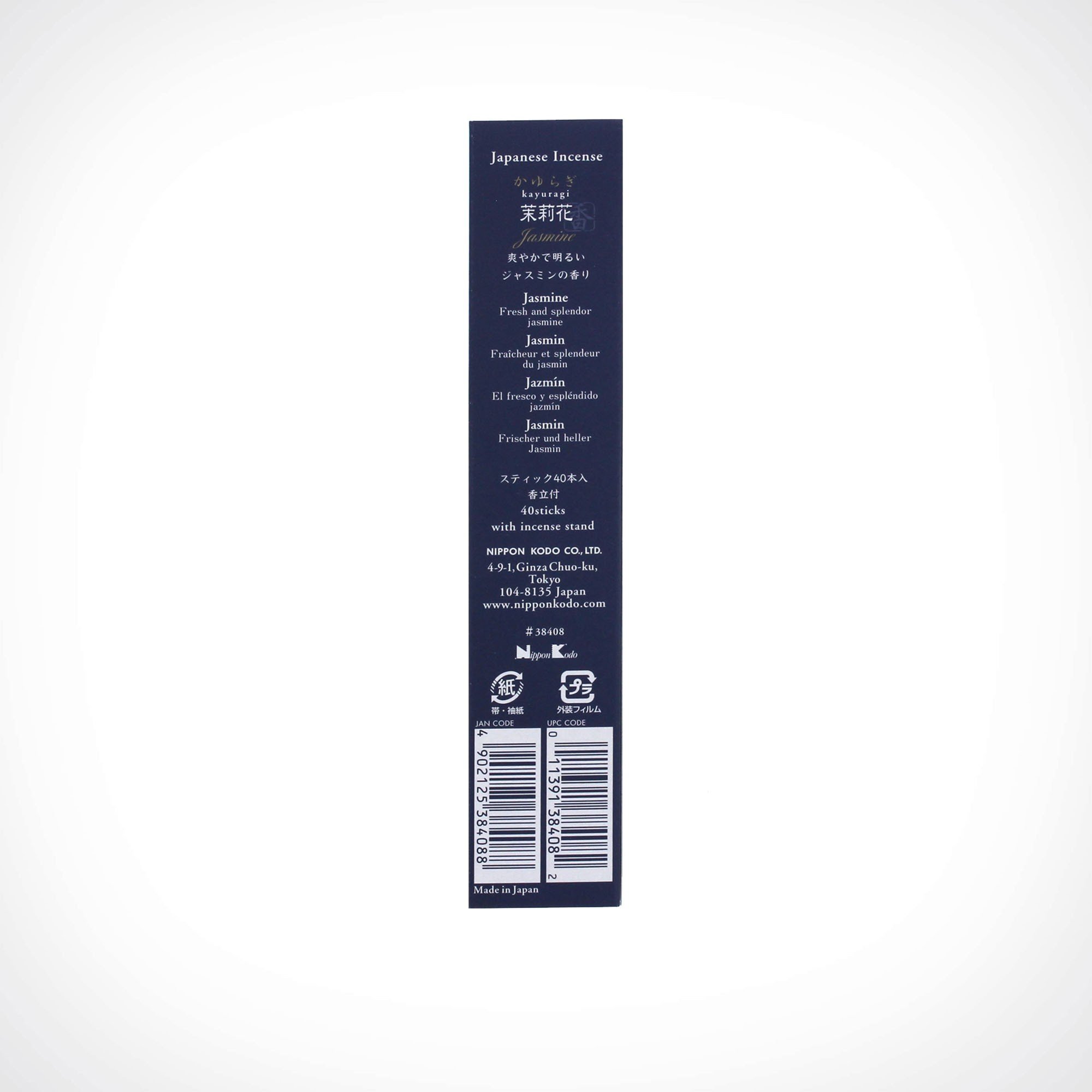 Prabangūs japoniški Nippon Kodo Kayuragi kolekcijos smilkalai. Gaivus ir ryškus jazminų aromatas. 40 lazdelių. Vienos lazdelės smilkymo trukmė 25 min.