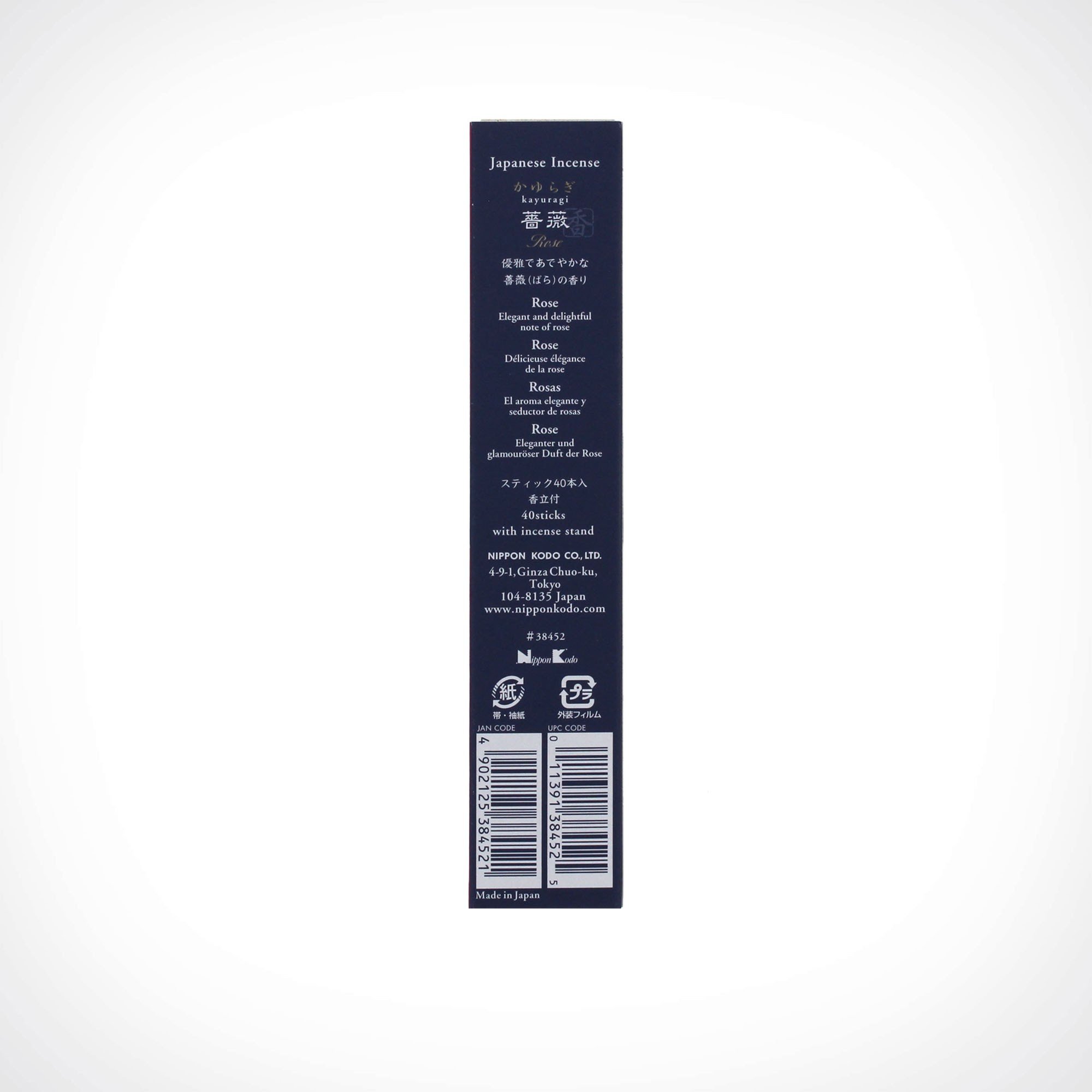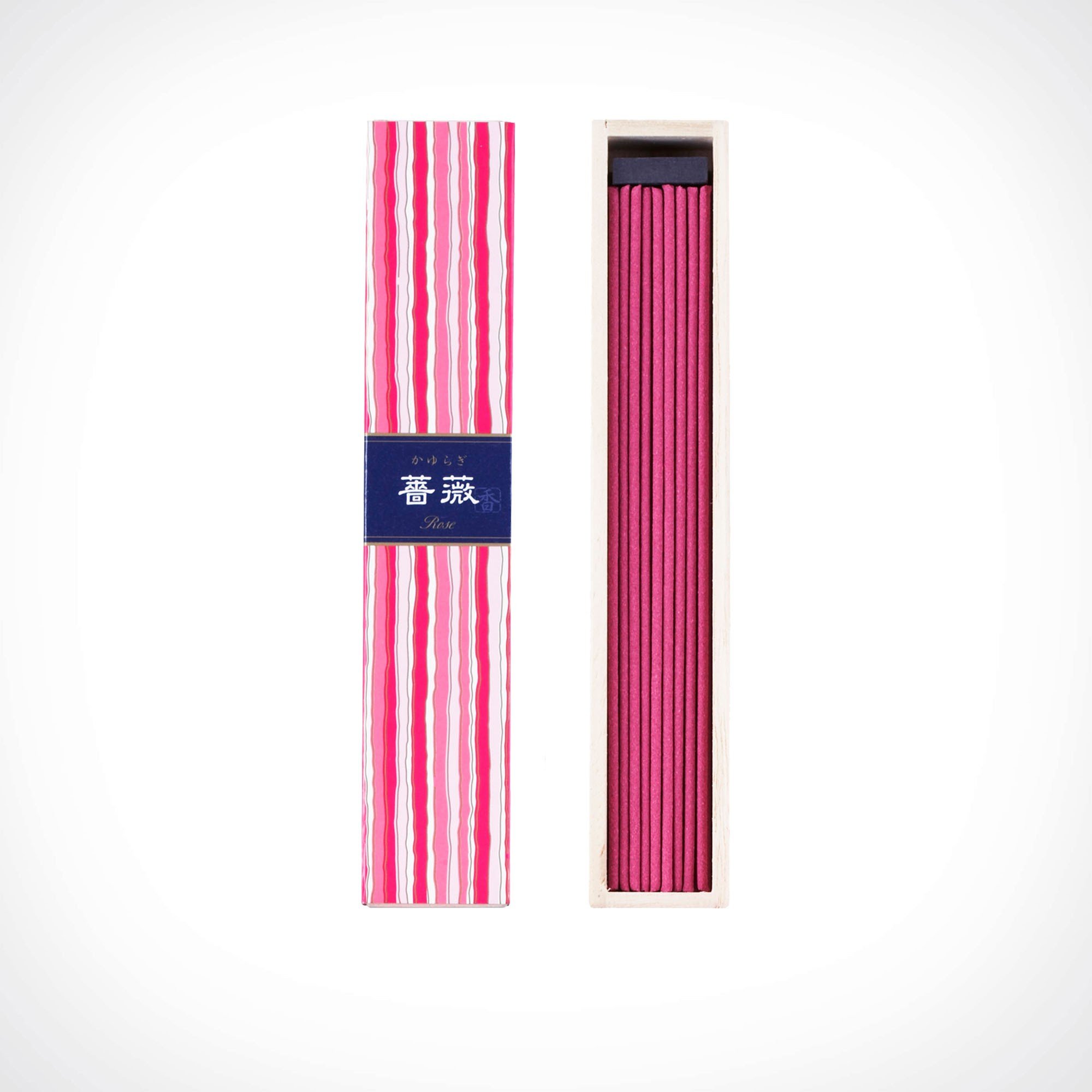 Elegantiškas ir nuostabus rožių aromatas. Prabangūs japoniški Nippon Kodo Kayuragi kolekcijos smilkalai. 40 lazdelių. Vienos lazdelės smilkymo trukmė 25 min.