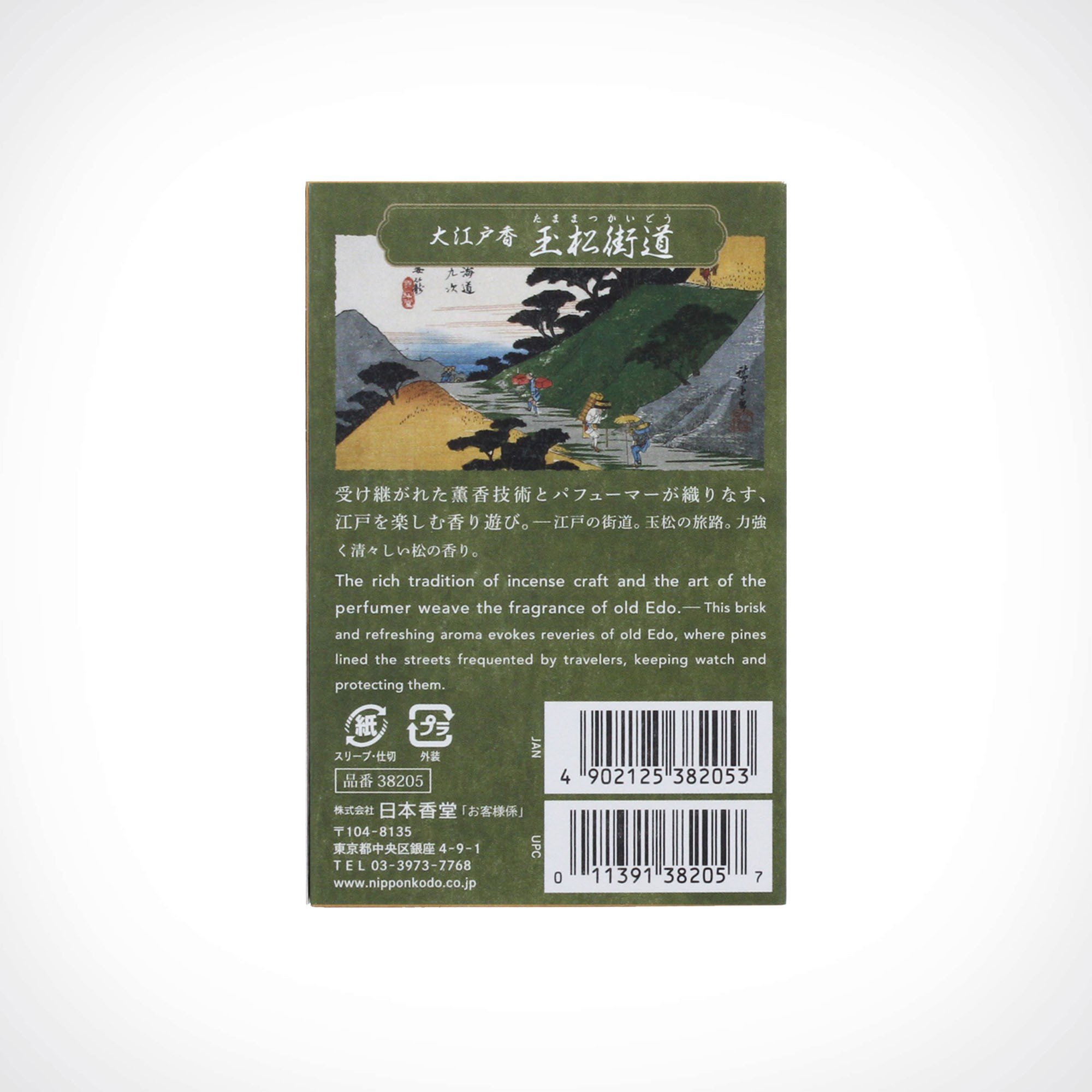 Gaivus pušų aromatas. Pušis saugo keliautojus ir stebi, kad šie namo sugrįžtų saugiai. Gaivus aromatas primena senojo Edo laikotarpio Japoniją, kur keliautojų lankomose gatvėse rikiavosi pušys.